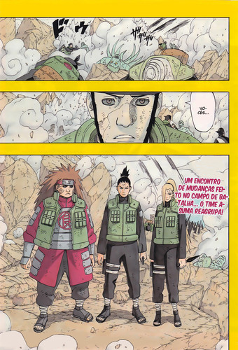 Para concluir excelente capítulo, a guerra parece que está a melhorar, apesar de ainda não ter criado no leitor o que já devia ter feito desde o início, o leitor dizer épico, a guerra está a ir bem, mas não dá a entender aquele sentimento, isto está a chegar ao fim. Poderia ajudar se Kishimoto mata-se alguém do bem, afinal é uma guerra, tem de haver perdas dos dois lados.