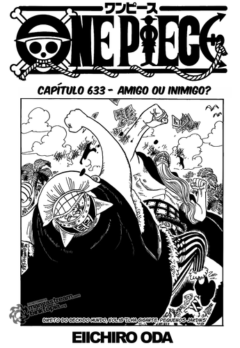 Mencionei no inicio a capa, mas a melhor página foi a página dupla final, com os mugiwaras todos juntos e ainda o Jinbei e a princesa. E já que o Oda os colocou ali começam novamente as suspeitas sobre o 10º mugiwara, gostava de ver o Jinbei no grupo, já a princesa não gostaria nada.