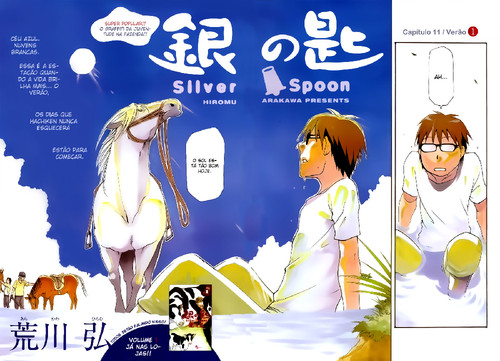 No capítulo 11 começou uma nova saga, com direito a páginas coloridas e foi um capítulo realmente engraçado, do início ao fim, concluindo com chave de ouro. Tenho de destacar a “guerra” entre o colégio agrícola e o colégio industrial, o que dentro da temática do manga faz todo o sentido, ao englobarem o sector primário e secundário, mas o que realmente importou foi a “guerra”. De um lado o sector masculino lutava e gritava, do lado feminino tudo calmo e risinhos enquanto jogavam ténis de mesa e badmington, no final acabaram por ir almoçar todos juntos e na hora de despedida ficou a promessa de se encontrarem ano que vem.