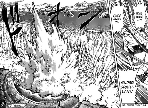 Sobre a cascata, é sempre complicado quando se descreve uma luta contra a Natureza, já que parece que apenas um é que está a lutar e isso foi o que aconteceu aqui, a cascata supostamente seria impossível de ser ultrapassada, mas eles fizeram em 2 capítulos, mas demorar mais seria apenas repetir o mesmo de sempre e se já acho combates que duram alguns capítulos secantes o que não falar de uma luta contra uma cascata.