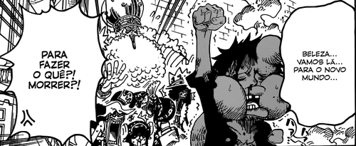 É sempre bom ver as reacções dos personagens às escolhas malucas do Luffy, que já tem como inimigo dois dos 4 imperados (Big Mom e Barba Negra) e todo o Governo Mundial, fora a Marinha que vem por acréscimo quando se torna pirata, resumindo ele só não tem o Dragon contra si e o Shanks, já o Kaidou não deve demorar muito até ele brigar com ele também.