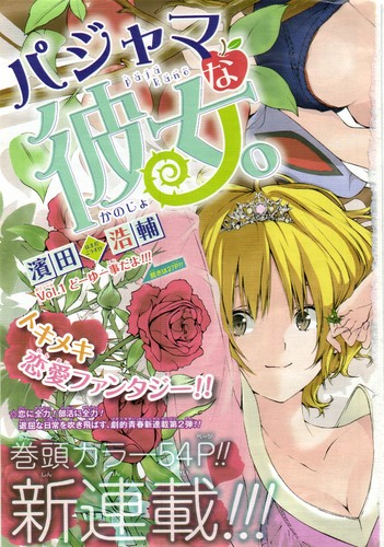 Estreia de Pajama na Kanojo, mais uma manga de romance, não entendi a lógica da Jump em estrear um manga de romance e um de desporto nesta leva, a não ser que eles não estejam satisfeitos com Kurogane e Nisekoi, porque não vejo mais nenhuma explicação para estrear dois novos mangas do mesmo género dos novatos mais populares actualmente, porque já foi provado com Harisugawa que a estreia de Nisekoi acabou cancelando Harisugawa.