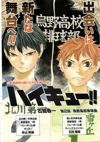 Hq, Haikyu ou High Kyuu, a cada semana surge um novo nome, ainda prefiro Hq, ganha a página colorida habitual do segundo capítulo. Reborn e Medaka também com páginas coloridas e sem muito a dizer em relação a isso.