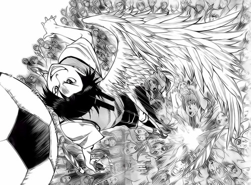 Eu já tinha olhado por alto a raw do último capítulo e é onde me deparo com uma coisa simplesmente absurda do personagem principal a criar uma asa maior do que o planeta Terra, relembrando que o manga é de futebol, é pena é agora não conseguir encontrar a imagem, mas não fiquem desanimados o primeiro capítulo também está cheio de absurdos desses.