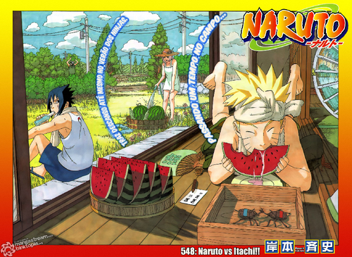O título do capítulo não teve nada haver com o capítulo, no máximo seria, “O encontro de Naruto e Itachi”. Mas de qualquer maneira seguindo em frente, Naruto teve páginas coloridas, bem desenhadas e bem coloridas desta vez, ao contrário de na altura dos resultados de popularidade.