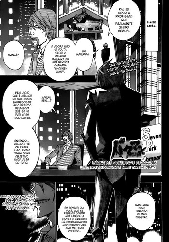 E o pior de tudo é se ele for o Nanamine, já nem vou falar do fracasso que foi essa saga, mas não haveria coerência alguma, porque se ele é capaz de escrever tantas histórias boas, porque é que foi logo ser serializado com um dos poucos mangas que já apareceram em Bakuman que eu nunca me interessei em ler, seria a mesma coisa que a Urakawa escolhesse serializar Gin no Saji em vez de Full Metal Alchemist ou um mangaka poder escolher em serializar One Piece e Sket Dance e escolhesse Sket Dance.
