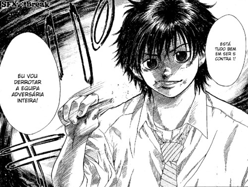 Mas antes disso alguns outros aspectos, a Madoka sem dúvida é a personagem feminina com maior personalidade que já vi num manga de desporto. Em apenas dois capítulos já fez mais coisas do que a personagem feminina de Kurogane, por exemplo, a única personagem feminina que se pode comparar é a de Eyeshild21, mais pela sua evolução como personagem do que pelos primeiros volumes do manga. Basicamente o que quero dizer é que em dois capítulos, ela mostrou que não servirá apenas para apoiar a equipa de basquetebol e servir de íman para os rapazes entrarem na equipa.