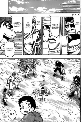 Há algum tempo que não colocava Toriko fora do top5, pelo menos acho, de qualquer maneira de certa forma merece estar fora, mas também não merece. Ou seja, o capítulo foi bom, mas faltou muito o sentimento de, eles os 4 estão juntos, o que não houve de maneira alguma, houve algum mistério em relação a quando eles finalmente se juntariam os 4 na mesma caça, mas no final nada de especial, se juntam sem nada de mais.