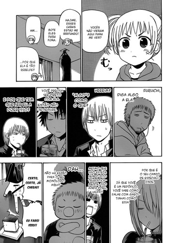 E por fim, a primeira “conversa” entre Beel e a Futaba, onde o Beel todo cheio de pose, acaba ficando envergonhado no final, e com isso está aí introduzida uma dupla que pode dar bons capítulos. Boas expectativas para este arco, pelo contrário cada vez mais certo que o autor de Beelzebub está satisfeito em ser um manga de meio de tabela.