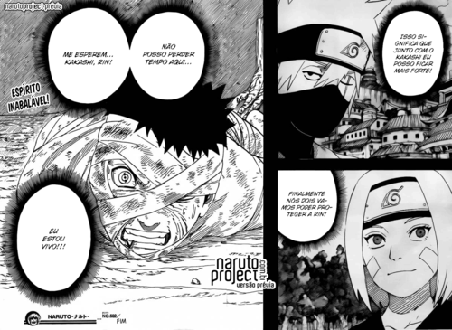PS: Mais uma vez o Kishimoto mostrou que pormenores não são de todo o seu ponto forte, difícil acreditar que um Uchiha que despertou o sharigan horas antes, levou com uma rocha em cima de metade do corpo, esteve inconsciente, acabou de acordar, está quase morto, mas não deixa de usar o sharigan.