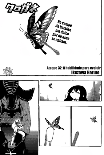Vou começar com dois elogios, primeiro gostei da ideia da borboleta no inicio do capítulo, apesar de que acho que tendo em conta que estamos a falar de Kurogane, esses momentos são iguais ao que o Kubo faz em Bleach, usar essas cenas intelectuais para tentar vender o manga como uma coisa que está longe de ser, de qualquer maneira foi uma boa ideia a borboleta.