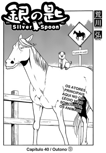Já na parte dos cavalos, volta a disputa entre o Hachiken e o seu cavalo, que não gostam nada um do outro. Tema que poderia ser bem secante em outro manga, na verdade a maioria dos plots de Gin no Saji, mas pela excelente qualidade da autora em desenvolver uma história fica interessante. O final do capítulo fica meio naquela de um cavalo para um cavaleiro.