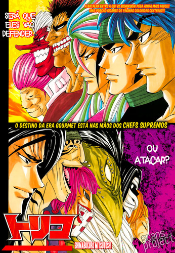 Mas o que realmente interessa nesses três capítulos não é isso, mas sim tudo o resto, traições surpreendentes de personagens importantes e começo a pensar que afinal a terceira força do Universo de Toriko pode mesmo ser a mais forte, principalmente se ainda houver mais surpresas pela frente, como a menção ao Joa por parte da Setsuno. Zebra em destaque igual a bons capítulos e desta vez não foi diferente, só achei meio estranho ele ganhar tão facilmente dos Nitros. E claro, uma excelente batalha entre as personagens mais velhas, que infelizmente não deve ter um fim numa batalha 1x1, a não ser que as duas se aliem temporariamente para derrotar o Zaus e depois voltem a lutar.