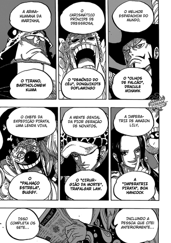 Geração essa que incluí o Buggy, grande aposta desde que o personagem a tal carta misteriosa já há uns bons capítulos atrás, mas sem dúvida o mais interessante dessa sua nomeação é a Marinha e o Governo Mundial realmente o considerar uma lenda viva, tecnicamente ele é, mas na realidade só mesmo fama e nome, porque ele é claramente o mais fraco dos 7. Sete, mas que ainda falta revelar qual o último, sinceramente não tenho ideia de quem seria o sétimo, mas já que ele não foi revelado é obrigatório que seja alguém já conhecido e de preferência um nome grande o suficiente para que faça sentido o Oda não ter revelado neste momento.