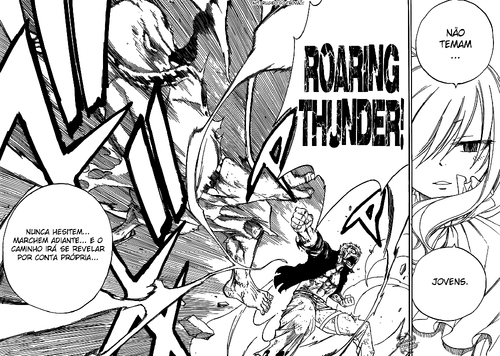 Já nem me lembrava do Cobra, mas até entendo o porquê disso afinal ele apareceu no arco da Oracion Six, altura que comecei a acompanhar Fairy Tail semanalmente e também altura em que o manga começou a cair a pique no que diz respeito à qualidade, logo sem muito interesse em me lembrar do personagem ou qualquer coisa envolvendo esse arco. De resto como seria de esperar o Natsu já está aí para as curvas e com força total pronto para derrotar o Rogue e quem sabe ainda ter forças para derrotar pessoalmente todos os dragões.