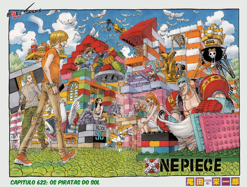 Na capa desta semana o trio da ilha Syrup. Cresceram, lol, parece que continuam com o sonho de se tornarem piratas e ficaram felizes com o sucesso dos Mugiwaras e em particular o facto de Ussop não estar morto. Daqui a duas semanas deve ser a kaya, que pensava que iria aparecer junto deles os 3, digo duas semanas porque para a semana One Piece tem página colorida e semana de página colorida One Piece não tem capa de capítulo.