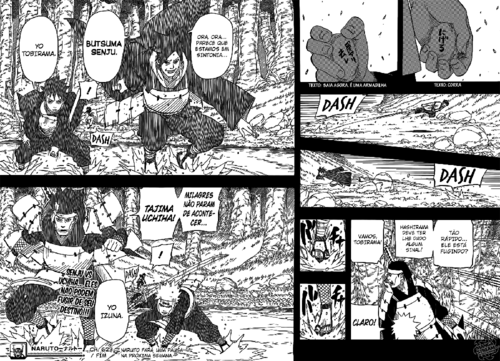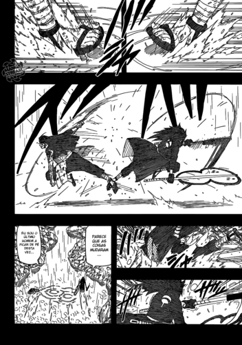PS: Nessa página que destaquei de Naruto, acho que teria simbolizado bastante e aumentado consideravelmente a qualidade do capítulo, uma página dupla, com o 3º quadro em grande destaque e nesse mesmo quadro, o Kishimoto dando espaço para o rio, quem sabe mesmo mostrar duas pequenas pedras. Pelo menos teria sido melhor do que essa páginas e todas as situações em separado, e sem dúvida teria sido melhor do que a página dupla que o Kishimoto desenhou nesse capítulo.