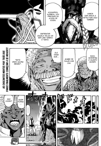 Infelizmente apenas comentando sobre um capítulo de Toriko, do qual não tenho muito o que comentar, início de batalha, está interessante, com mais alguns exageros típicos de Toriko. Parece que o Shimabukuro irá continuar seguindo essa forma de combate, ou seja focando em lutas 1 contra 1 e esquecendo nesse meio tempo tudo o resto em redor, claramente numa guerra não é a melhor solução, mas para a maioria dos autores é muito melhor dessa maneira do que tentar fazer tudo ao mesmo tempo e não mostrar nada no final, nesse aspecto até o Oda teve dificuldades em Marienford.