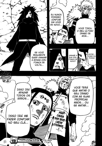 Se no 623 o Kishimoto mostra a relação deles como crianças, no 624 mostra a relação deles já adultos, e não sei se por aí já se pedir uma maturidade extra, mas esse capítulo já não foi tão bom quanto o anterior ou os restantes do flashback, e aí destaco dois problemas. O primeiro, percebi que a ideia era em dois capítulos mostrar duas realidades diferentes, mas enquanto essa velocidade rápida funcionou no 623, o 624 acabou prejudicado por ser rápido, e segundo dá para desculpar atitudes como a do final do capítulo em crianças, mas adultos? Aquele final foi forçado, mesmo assim dando o benefício da dúvida.