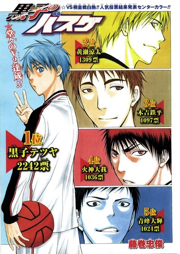 Antes de mais, resultados do concurso de popularidade e sem nenhuma grande surpresa, no máximo o Kagami ficar apenas em 4º sendo que é praticamente o protagonista do manga. De resto esses 5 mais populares também mostram o porquê do Kise no futuro ser visto como o segundo melhor da Geração dos Milagres, deixando o Aomine entregue ao injusto papel de ser o primeiro eliminado.