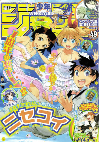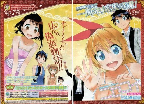 Nisekoi ganha a sua terceira capa nesta edição, edição essa que comemora o aniversário de 1 ano de publicação. Um ano que correu bastante bem para o manga, contrariando o rumo dos novatos na Jump que vinha desde o final de 2009, actualmente está na fase de se estabilizar na toc e se mantendo assim ainda terá uns bons anos pela frente. A capa ficou boa, mas a página colorida dupla ficou bem simples para comemoração de 1 ano.