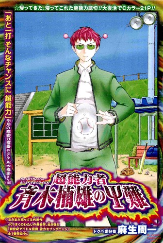 Genson, o gag manga, ganha sua segunda página colorida e já não vejo hora de ele chegar por volta do capítulo 15 para ser cancelado, faz St&rs parecer uma obra seinen. Nisekoi está na terceira semana, ainda mais 5 até ser rankeado, mas pelo capítulo não vejo grande futuro, claro a não ser o factor importante, Naoshi. Sket Dance com página colorida, espectacular, como sempre, com essa capa Sket Dance tornou-se sem dúvida num dos mangas mais importantes da actual Jump. Psi em mais um one shot, fico a pensar porque não serializar esse manga, pelas raws gostei mais do que Genson.